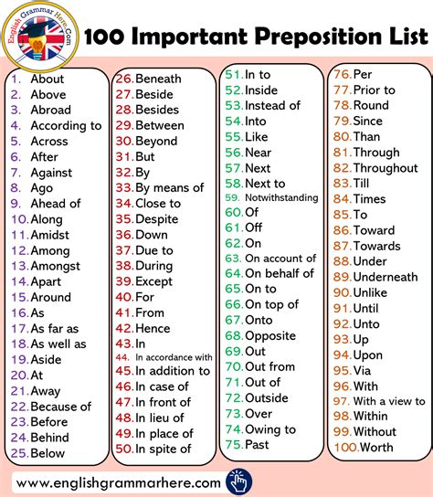 100 examples of prepositions