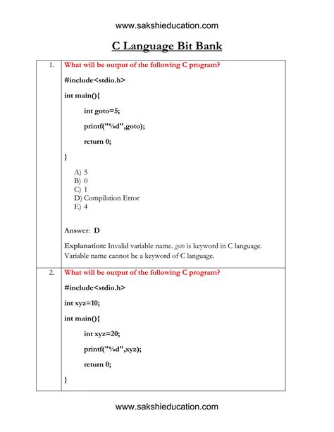 c language questions and answers