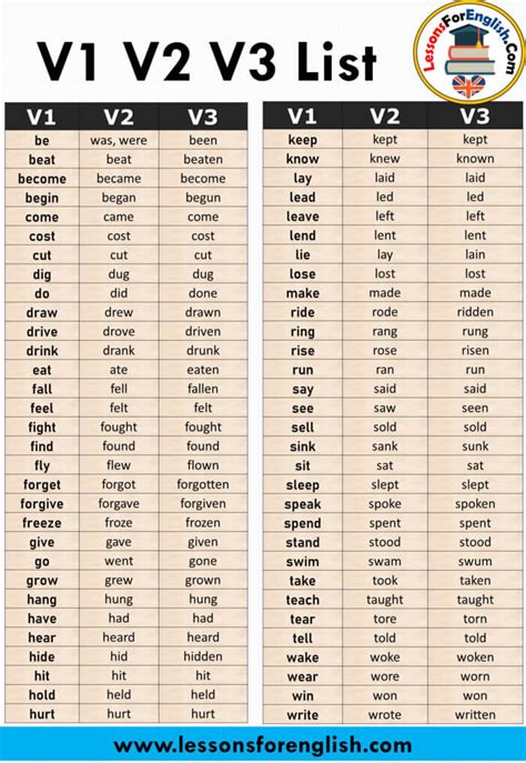 common verbs v1 v2 v3
