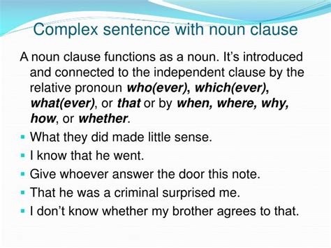 complex sentence noun clause exercise