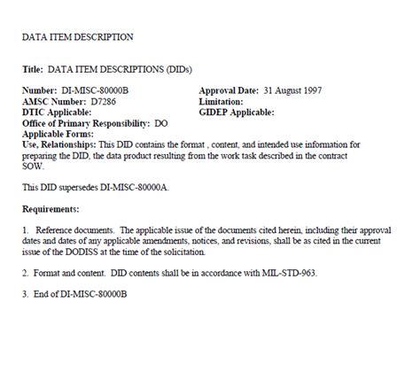 data item description example