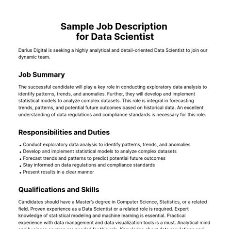 data scientist sample job description