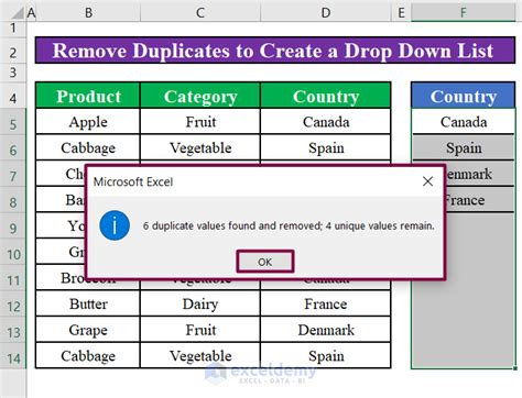 excel drop down list unique values