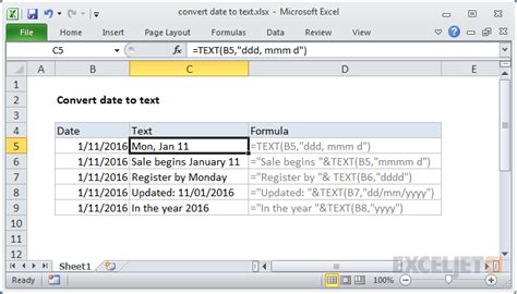 excel how to get date in text format