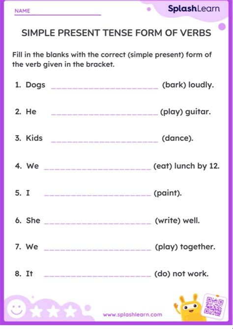 form of simple present tense worksheet