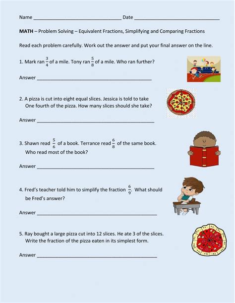fraction problem solving worksheets with answers pdf