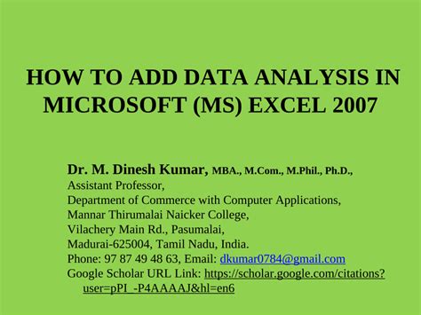 how to add data analysis in excel 2007