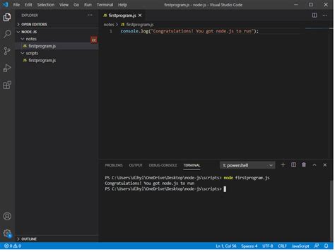 how to run node js script in visual studio code