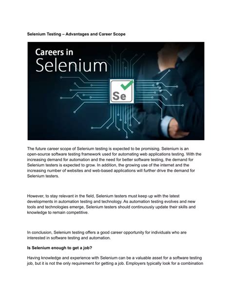 is selenium testing a good career. There are some references to is selenium testing a good career in this article. If you are looking for is selenium testing a good career you've came to the right place. We have posts about is selenium testing a good career. You can check it out below.