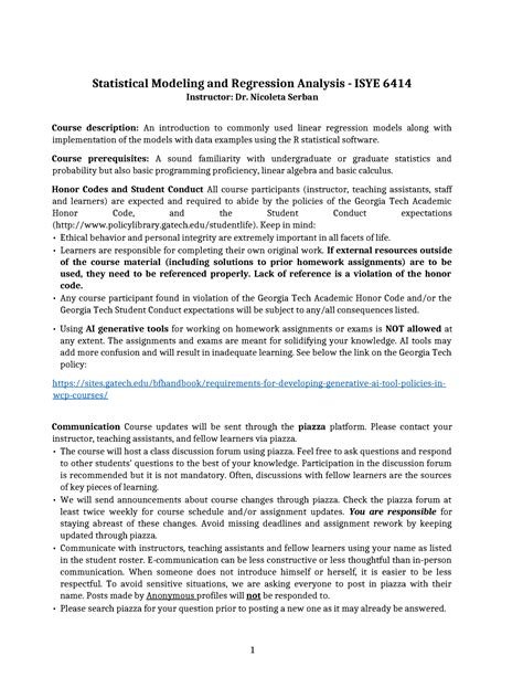 isye 6414 regression analysis syllabus