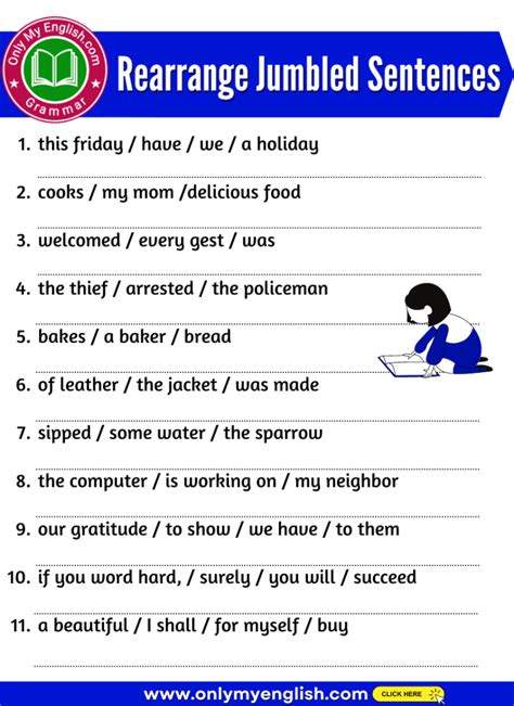 jumbled sentences exercise with answers for class 10 pdf