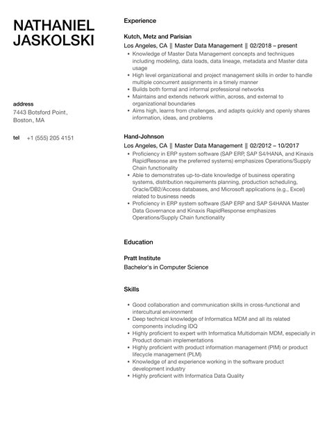 master data resume examples