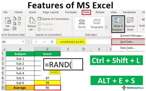 ms excel features list