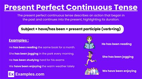 present perfect continuous tense examples list