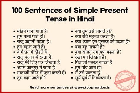present tense 100 examples in hindi