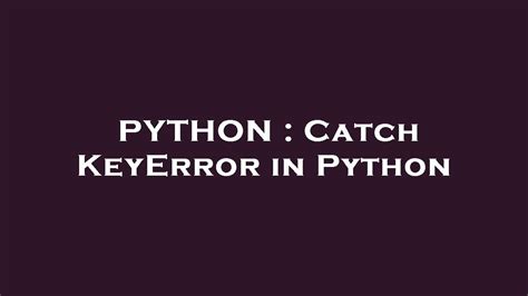python catch keyerror. There are some references to python catch keyerror in this article. If you are looking for python catch keyerror you've came to the right place. We have posts about python catch keyerror. You can check it out below.