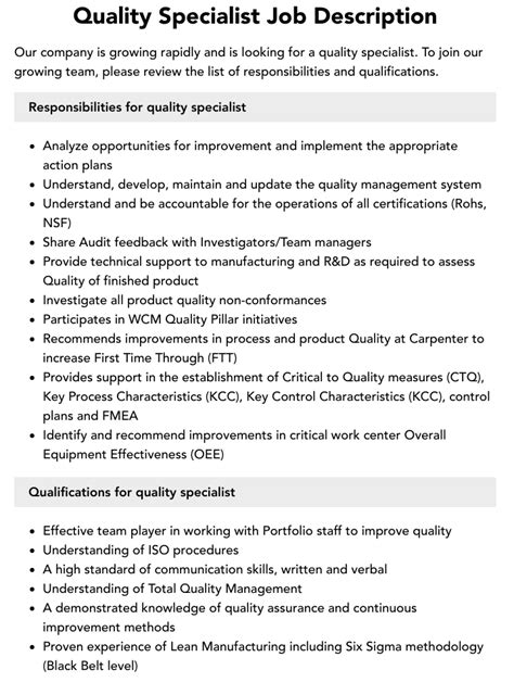 quality specialist job description. There are some references to quality specialist job description in this article. If you are looking for quality specialist job description you've came to the right place. We have posts about quality specialist job description. You can check it out below.