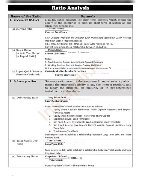 ratio analysis class 12 all formulas