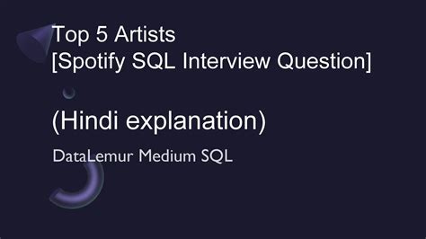 top 5 artists spotify sql interview question. There are some references to top 5 artists spotify sql interview question in this article. If you are looking for top 5 artists spotify sql interview question you've came to the right place. We have posts about top 5 artists spotify sql interview question. You can check it out below.