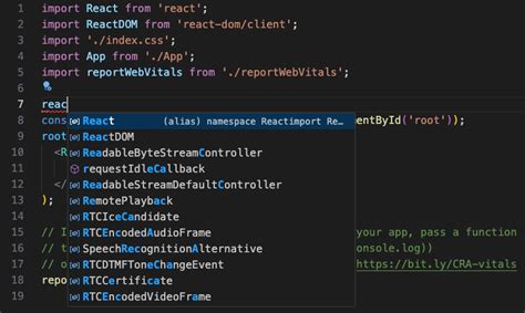 visual studio code react suggestions