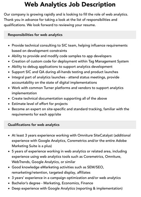 web analytics job description