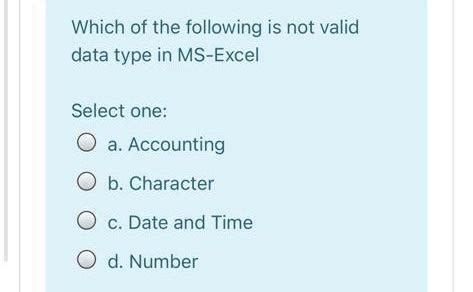 which of the following is not a valid data type in excel answer